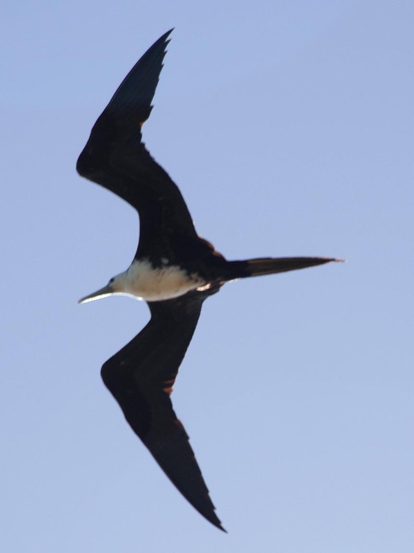 Les premiers oiseaux que nous avons vu sont des frégates, au mouillage de Marigot. Ils sont noirs, pas beaux, on dirait des chauve-souris et leurs ailes sont en forme de W.