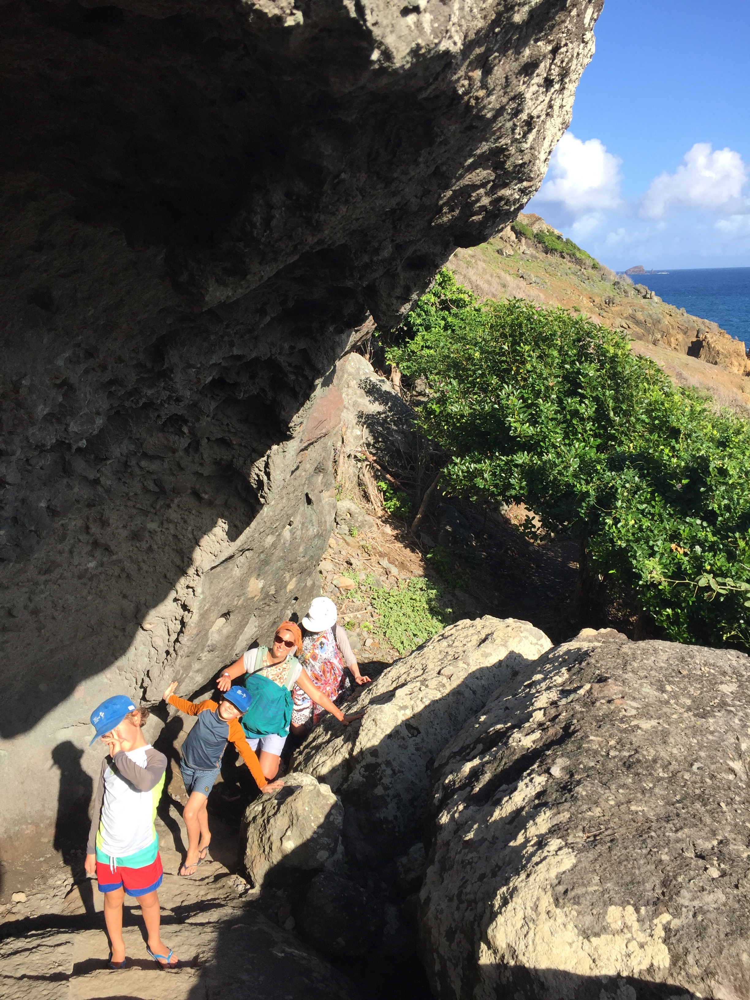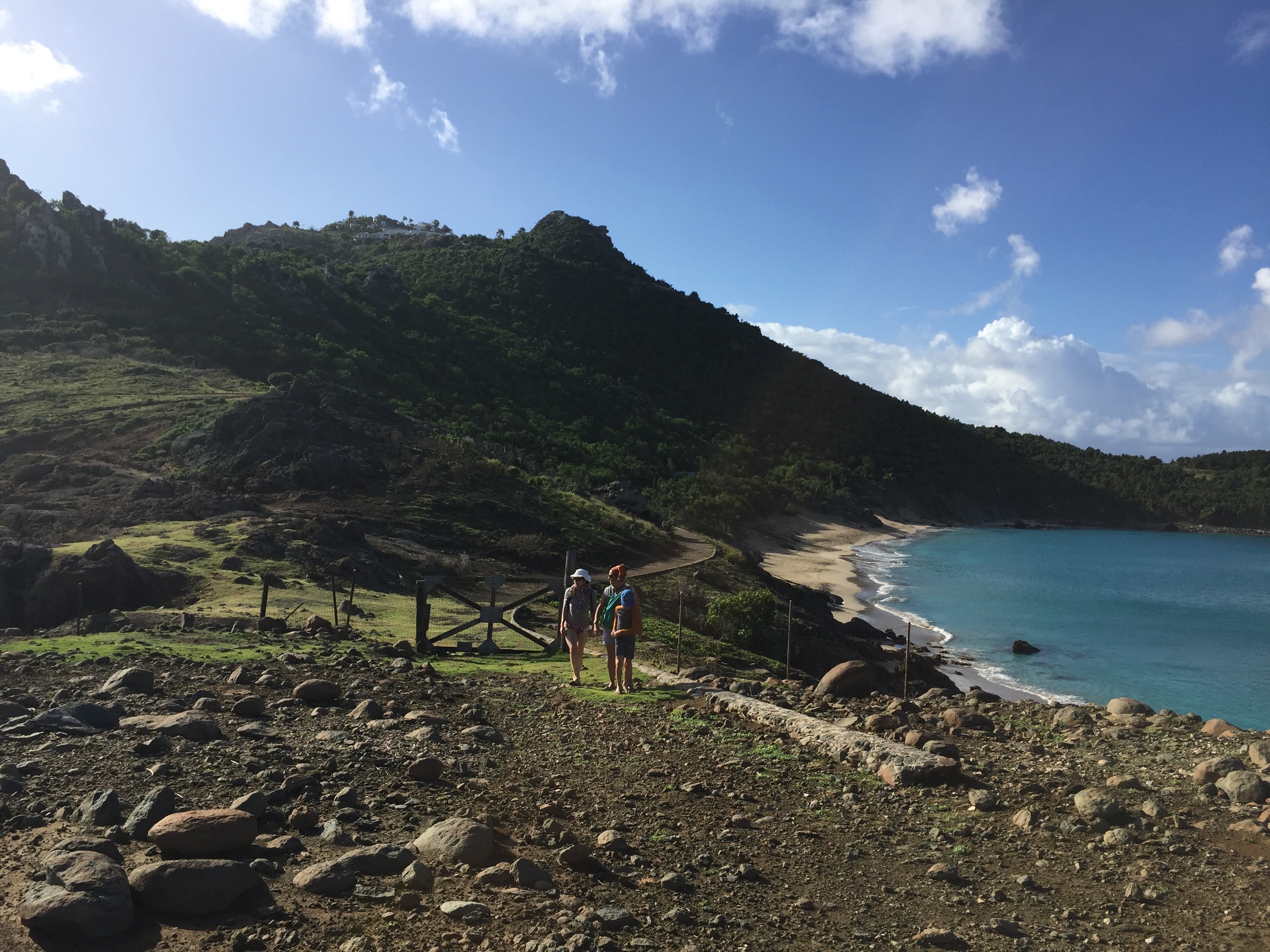 Entre Friar’s Bay et Happy Bay, on a fait la balade des iguanes ! D’abord, on en a aperçu un énorme, de un mètre de long, sur un gros caillou, il était orange et blanc. On a compris que plus ils sont âgés, plus ils sont marrons. Au cours de cette balade, on a vu des arbres morts, brûlés par le sel suite à l’ouragan Irma qui a ravagé l’île en 2017. Les iguanes se confondaient avec la couleur de ces troncs morts. Ils ne bougeaient pas et semblaient se camoufler et apparaître les uns après les autres, plus on s’approchait d’eux !