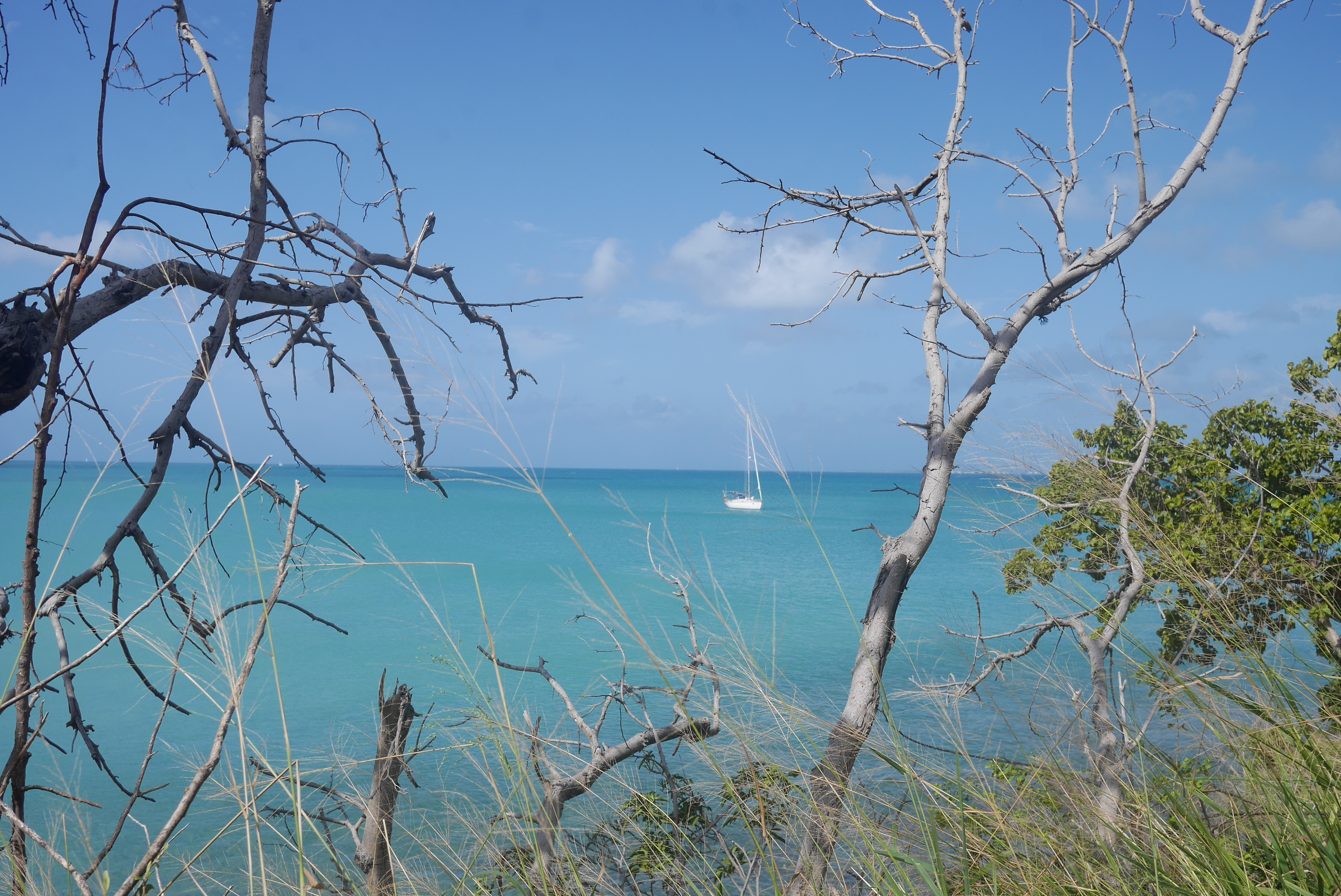 Ahhh, Antigua, notre très gros coup de coeur. L’île est grande, variée et super invitante. Nous longeons la cote sous le vent et avons envie de s’engouffrer dans toutes les baies que nous dépassons. Nous allons un peu vite droit au but dans un magnifique lagon fermé par la barrière de corail au Vent (ce qui nous vaut un A/R à Jolly Harbour pour aller faire la clearence le lendemain).