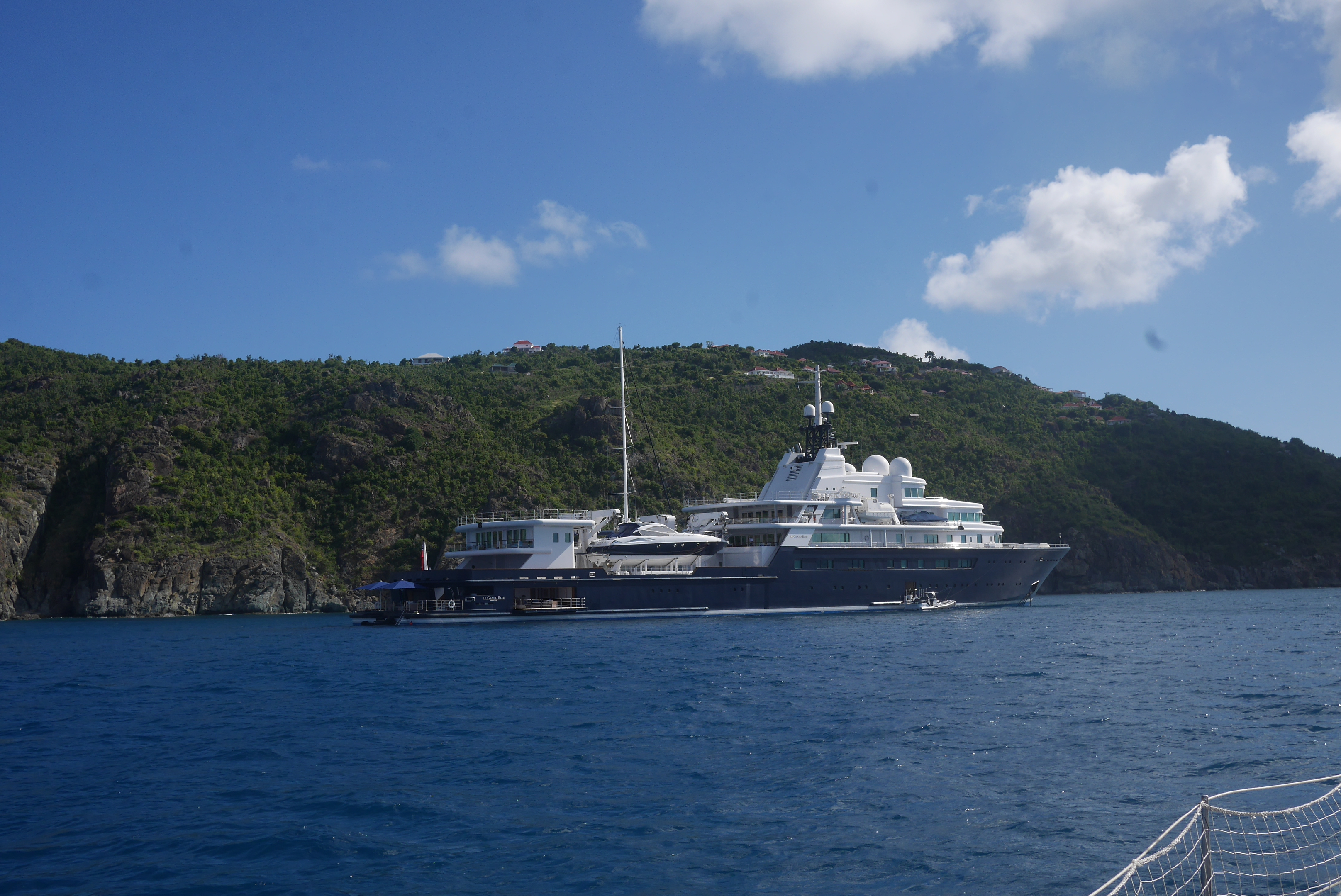 Et derrière le bout de l’anse, nous apercevons les cheminée des plus gros yacht de la planète. C’est le Disneyland des yacht à moteur dans ce paradis fiscal qu’est Saint-Barth. Les uns ont des tobogans géant permettant de glisser directement dans l’eau, d’autres ont leur hélico sur le pont, certains, ont vedettes à moteur, voilier et hélico sur le pont ou encore une annexe d’une vingtaine de mètres avec tous les joujous à bords. Arrivé à Gustavia, nous entrons donc dans le monde de l’argent et de la débauche, magasin de luxe, matuvu en veux tu en voila. Saint-Barth est la seule iles où il n’y a pas de noirs, une des raisons pour laquelle, les plus riches du monde auraient élus domicile pour passer leurs vacances, le racisme fédère apparement ces gens-là. Gustavia est cependant une petite ville très belle installée dans la topographie, ou se chevauchent une succession de toits rouges formant des espaces publics ombragés et de très belle qualité,