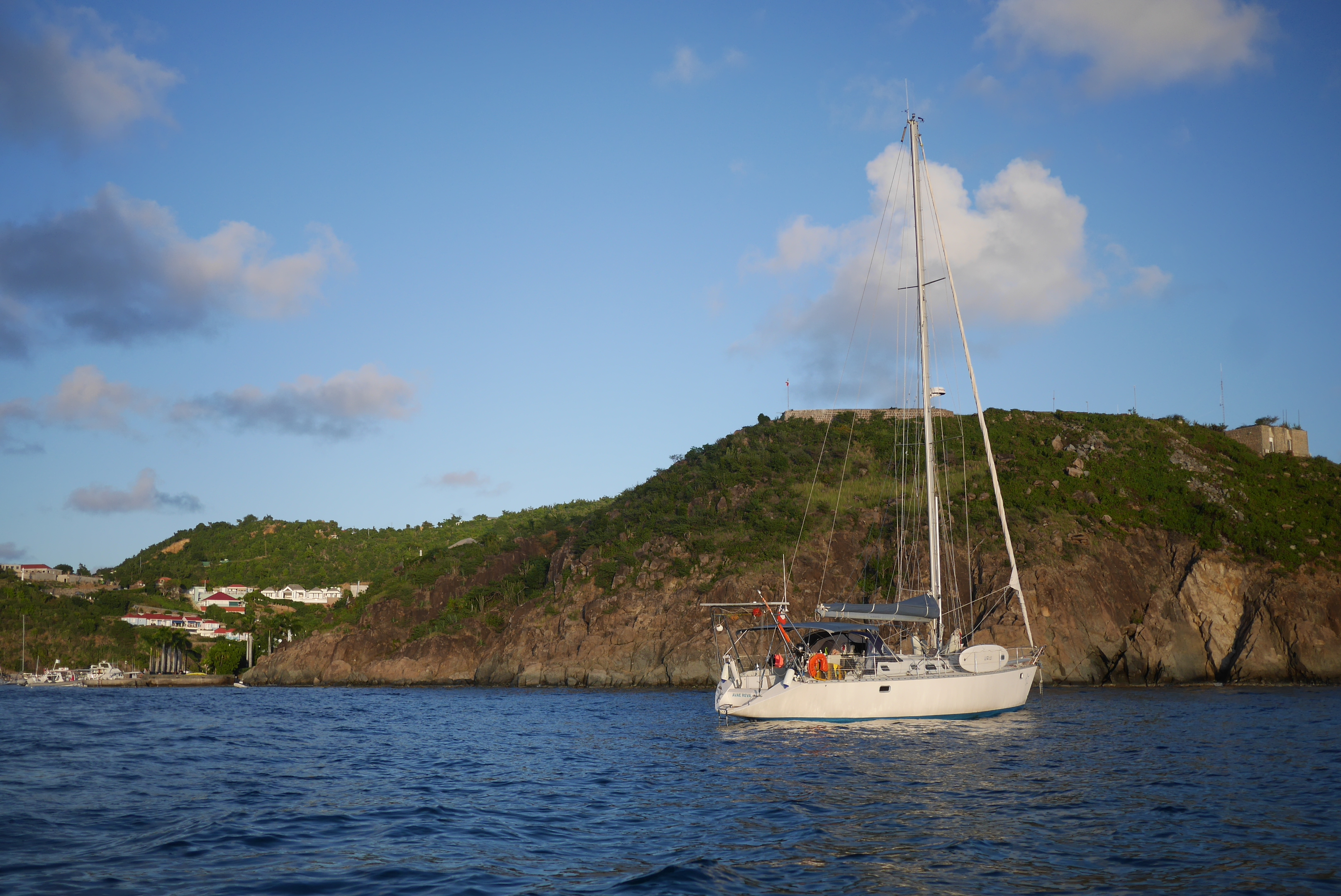 Dès le lendemain, nous sommes parti pour Saint-Barth, au bon plein, avec des pointes à 30 nœuds de vent de des creux de 2 m, bien heureux de s’engager dans une nav de 15 miles plutôt que 80 avec une équipière qui passait du vert au rouge selon la distance à laquelle elle se trouvait du sceau!
