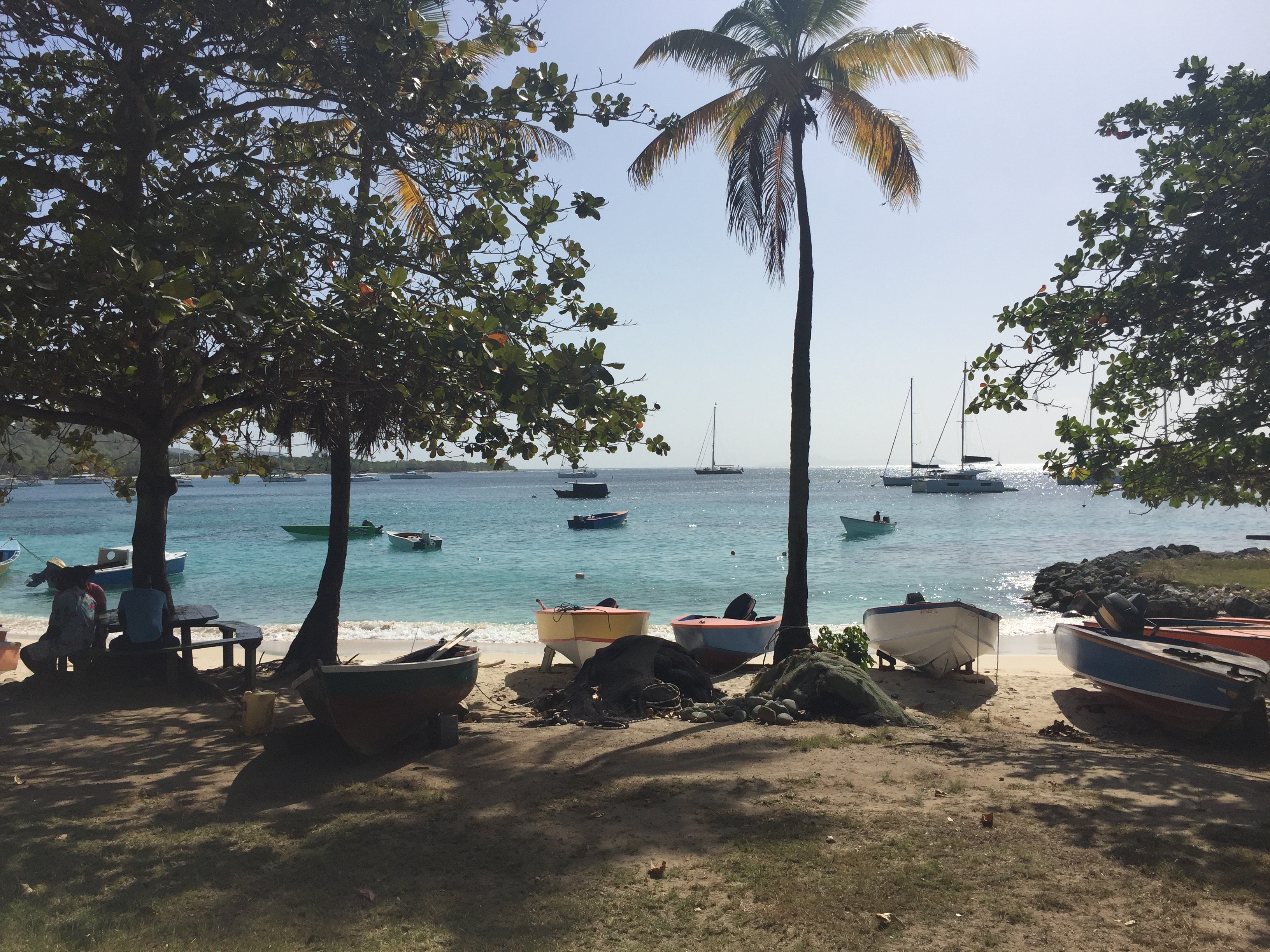 Bequia. C’est fou ce que les ressentis peuvent variés selon le contexte et l’état d’esprit de l’équipage. Alors qu’à l’aller nous n’avons pas du tout aimé le mouillage d’Admiral Bay, cette fois-ci, il nous comble. La côte est splendide, c’est paisible, nous nous sentons en vacances dans le voyage, paddle, plage, petit café au bord de l’eau, nage et gueuleton de langoustes.