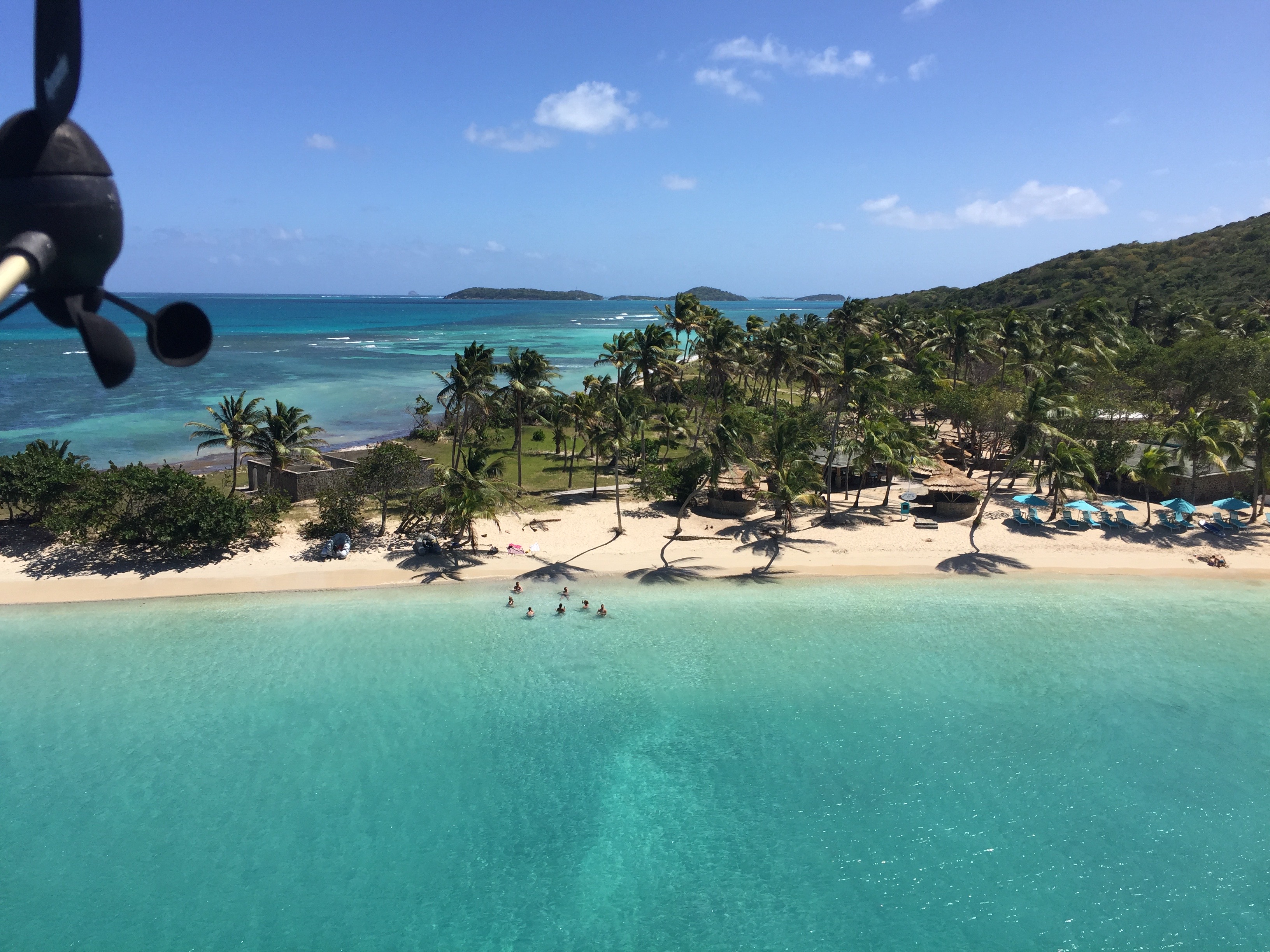 Petit Saint-Vincent (PSV). Nous visions Petite Martinique et nous nous sommes fait interpeller/séduire par cette minuscule ile entourée de barrière de corail et de bancs de sable. Un enchainement de lagons translucides ponctués de deux microscopiques iles désertes, Punaise et Morpion. C’est très beau, digne d’une jolie carte postale, mais nous nous y sentons comme désoeuvré.