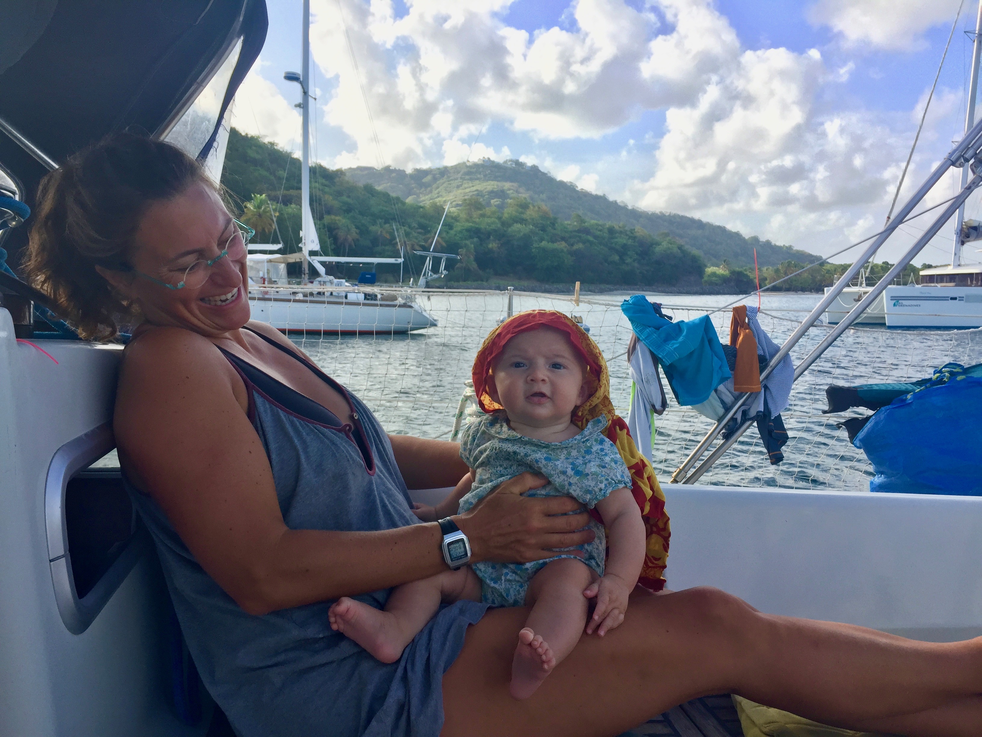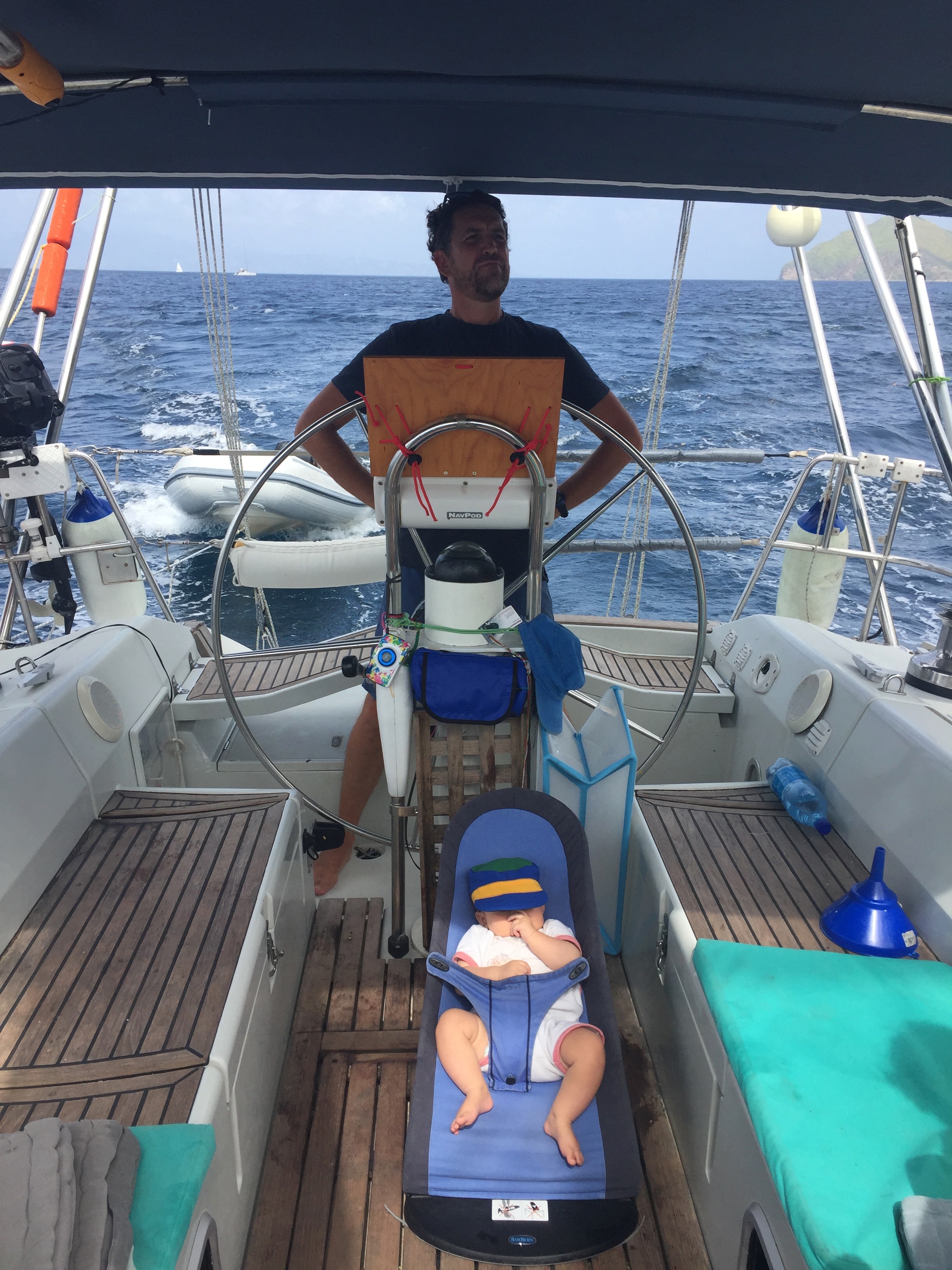 Mais franchement l’effet rouleur du bateau en continue est juste idéal pour les 6 premiers mois de vie, fini les heures à bercer bébé pour l’endormir! On recommande!Je dirais même que les mouillages les plus rouleurs sont les meilleurs. Je pense qu’il a fait ses premières nuits entre Nevis et Saint-Barth où l’on a pas fermé l’oeil de la nuit tellement ça roulait!