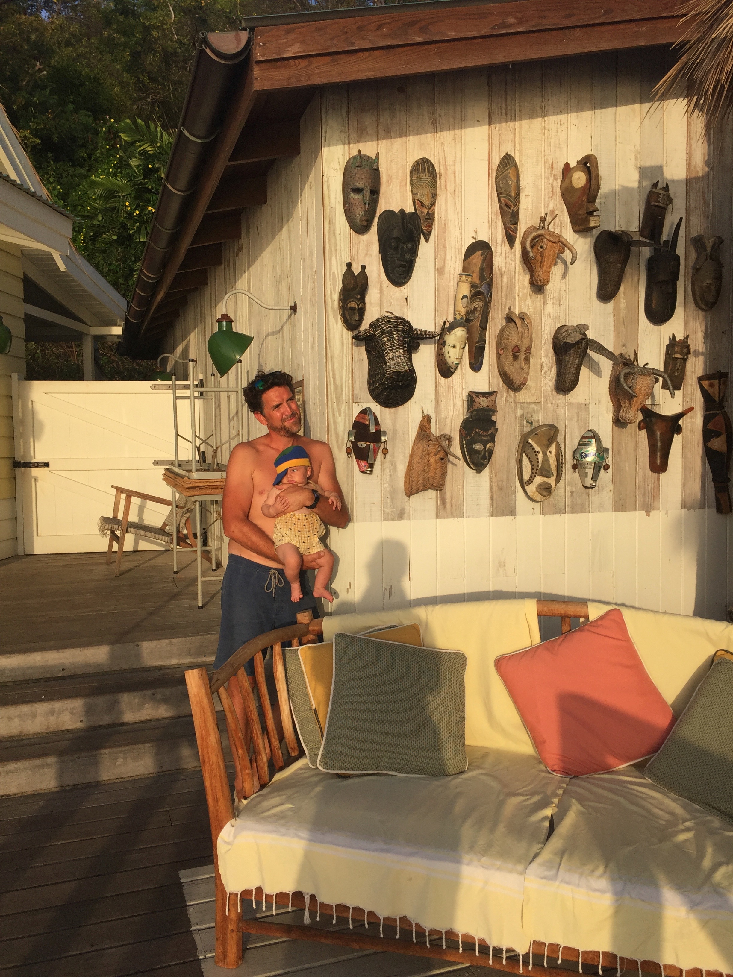 À peine le reef dépassé, nous entrons dans le fjiord et apercevons une quinzaine de dinghys posés sur la plage. Une bouée nous tend les bras juste devant, on s’amarre et on débarque en moins de 10 minutes. C’est le BBQ du dimanche, un rendez-vous du sud de l’île ou les voileux, les locaux, les pécheurs et les musiciens se retrouvent pour faire la fête. Du jamais vu, une superbe mixité où tous ces gens de multiples horizons se retrouvent en toute simplicité. Cette île est dingue! Les enfants partent faire du paddle tracté avec Gilles et sa fille, Timaël et moi nous nous baignons, Vincent ramène son barracuda pour le poser sur un des barbecues allumés. Un groupe de rasta commence un petit concert de reggae. Timaël devient la mascotte et la petite star de la soirée. Et nous rencontrons toute une communauté de français voyageur, Christian et Chantal sur Puravida, Gille et Marie, Yann et Fred sur Bulle, Agnes et Vennec sur Pikouponnes, en voyage pour un an, trois ans ou une durée indéterminé, autour du monde de l’Atlantique ou juste aux Antilles, chacun a son projet, son histoire son origine, et une chose nous relie tous, nous sommes là ici et maintenant, arrivé en bateau sur cette île du bout du monde. Du bonheur tout simple et partagé, une soirée comme on les adore. Nous n’avons aucune photo, juste des pures souvenirs!