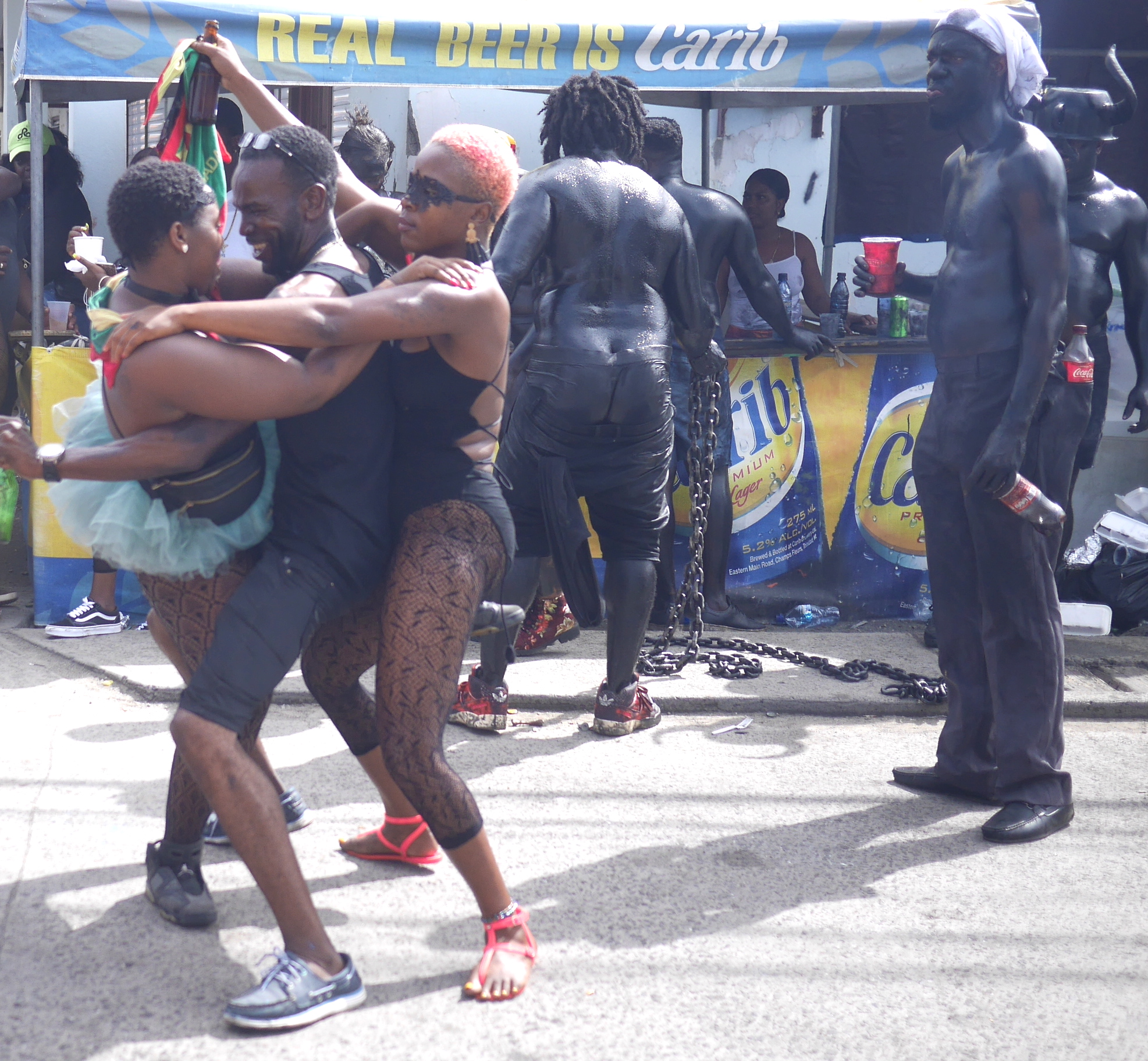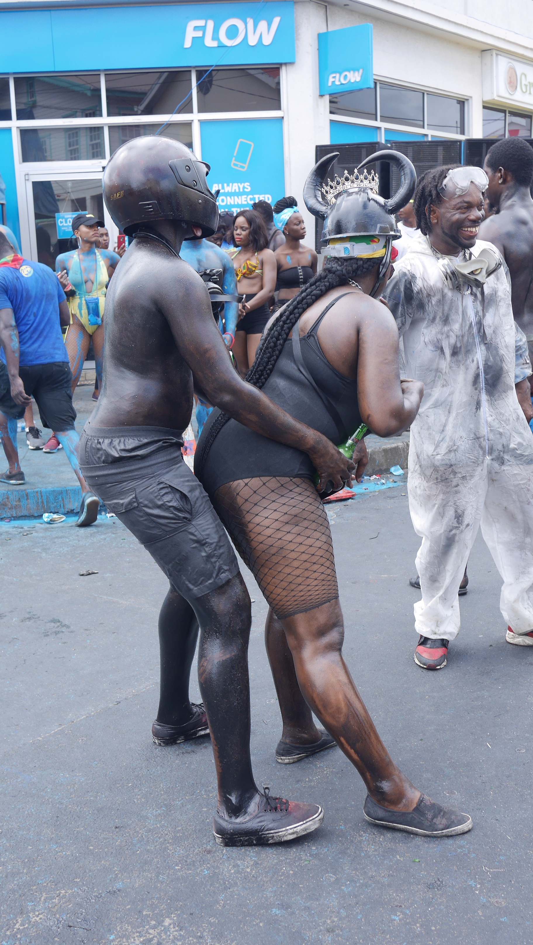 Hillsborough Bay, Carriacou. C’est le carnaval, depuis 5h du matin la fête bat son plein. Après avoir équipé les enfants de boulquies et turban, nous nous enfonçons dans le cahot festif qu’est le carnaval de Carriacou, nous sommes sidérés. C’est Jouvert, le jour du défilé du Jab Jab, des créatures enduites d’un mélange d’huile et de canne brulée danse le soca et cherche à semer la terreur. C’est une manière de commémorer les combats pour la liberté menés par les esclaves. Il est 10h du matin, les Jab Jaber sont enchainés, avec des masques à gaz et des casques à cornes complètement défoncés, les filles en bas résille et poitrine débordantes. Tout le monde se frotte de manière assumée et exubérante. On est complètement halluciné par cette tradition. Au vu des décibels et scènes pas trop adaptées à la famille, nous clearançons entre les enceintes saturées et les défilés macabres, et remontons l’ancre.