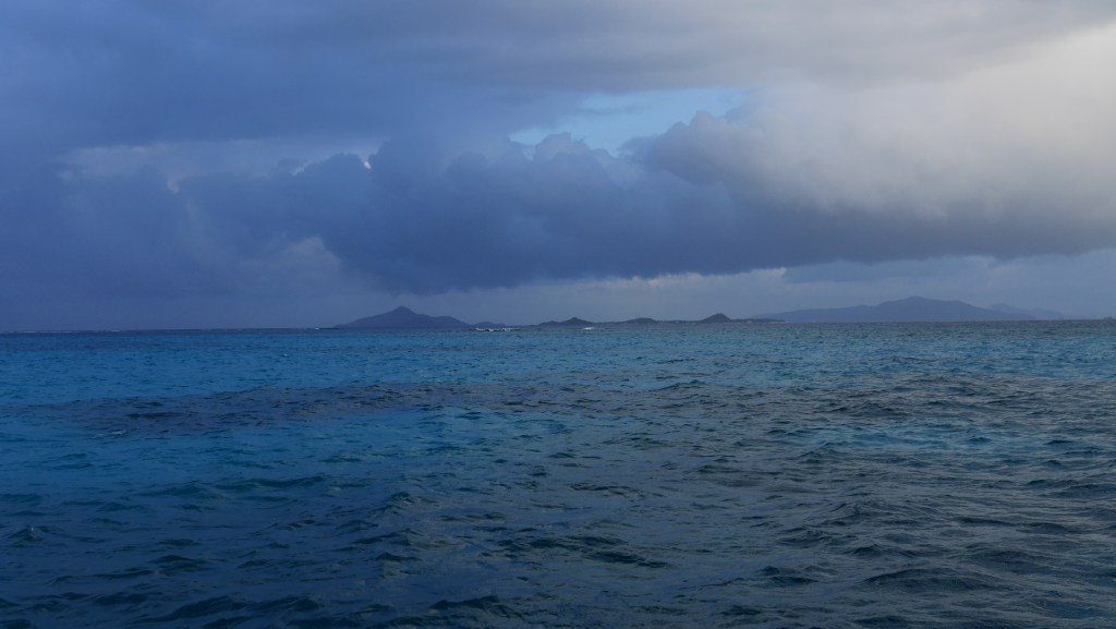 Nous partons donc des Grenadines pour nous abriter, pour retrouver un peu de quiétude, de calme. En mer, nous sommes tellement sensibles à la météo, tous les extrêmes se font ressentir immédiatement sur l’humeur du bord, un journée trop humide, trop chaude, trop venteuse ou trop houleuse et l’électricité embarque au sein de l’équipage. Être à l’écoute de notre rythme et trouver le bon abris au bon moment est indispensable. Nous sommes en osmose avec les éléments, sous leur emprise. Notre petite coque est un cocon fragile et poreux, nous flottons dans notre bulle sur l’océan entre mer et ciel.